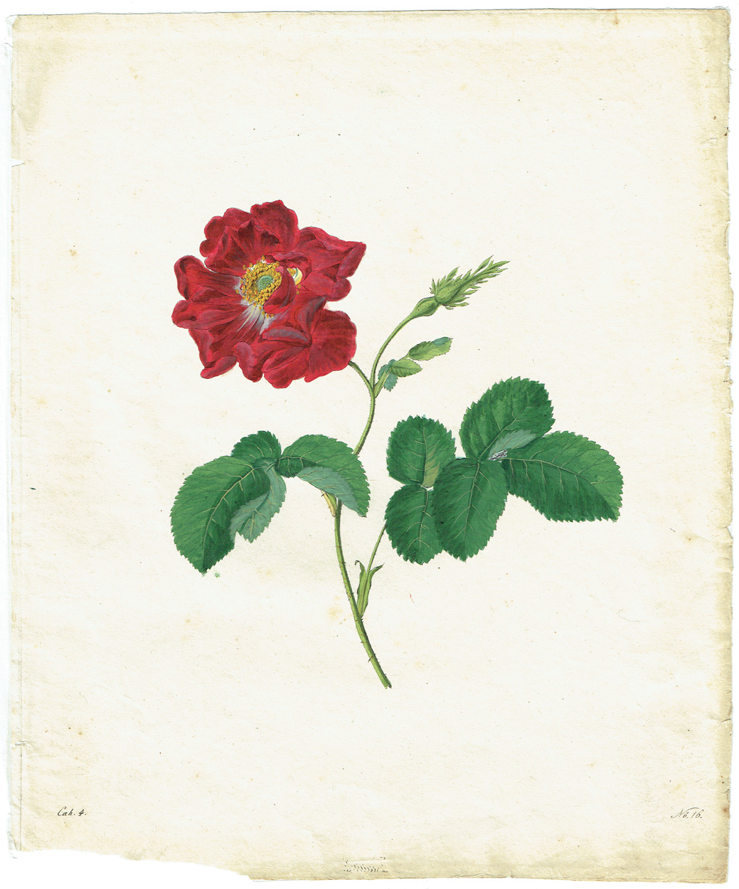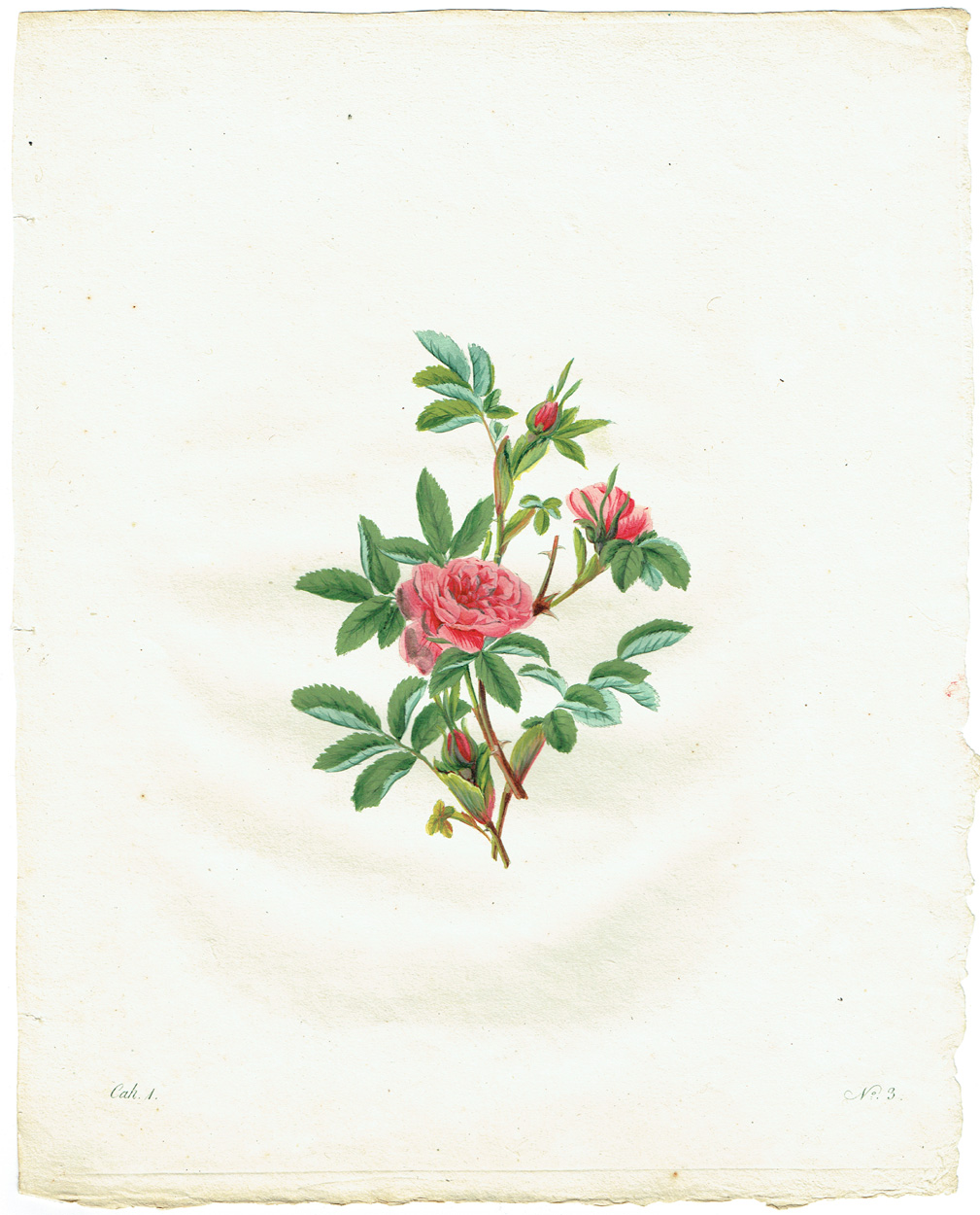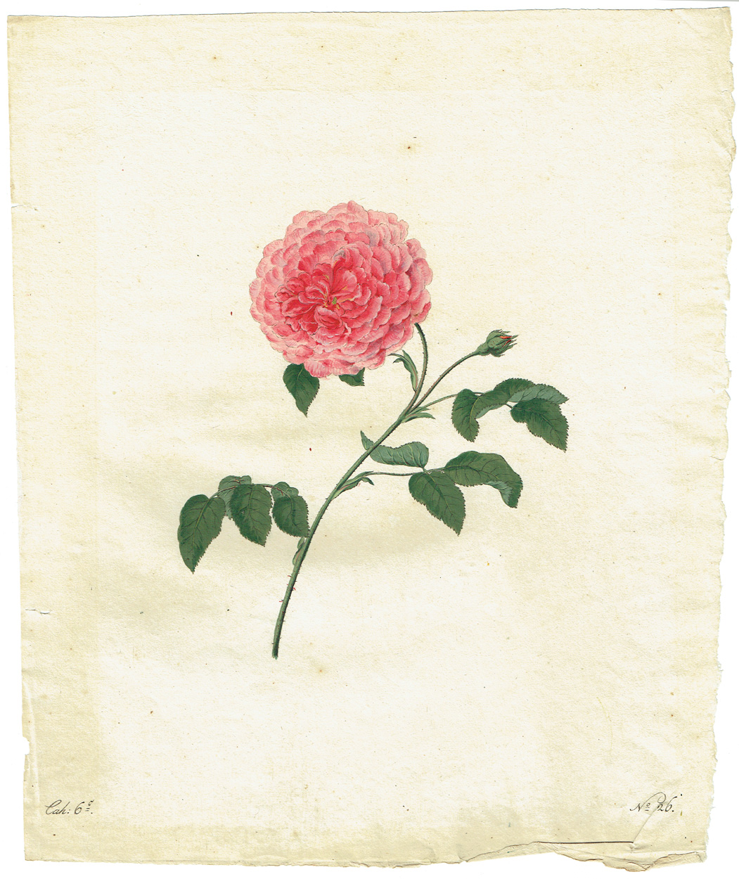 Die gemeine Gartenrose (Rosa centifolia), um 1830
