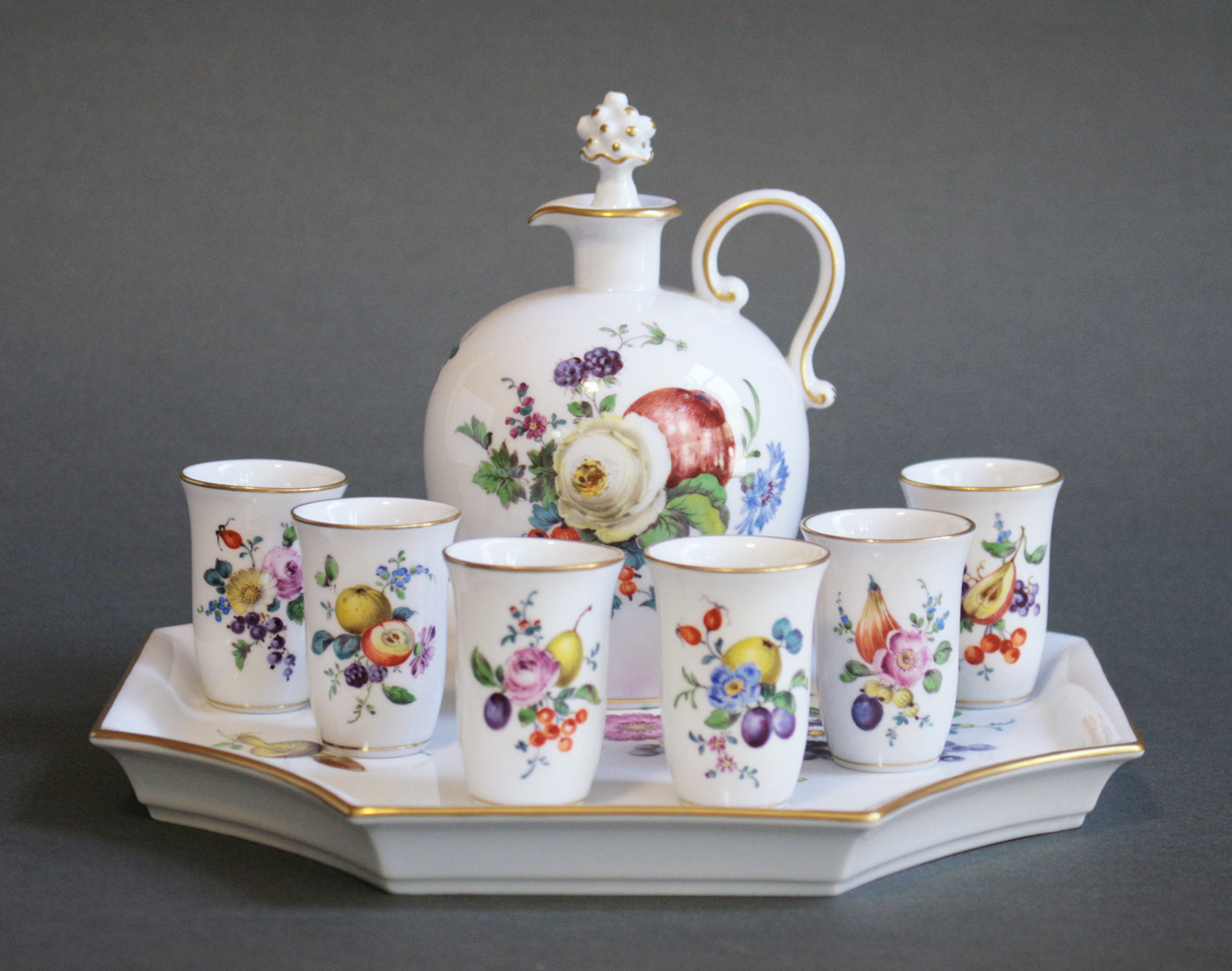 Likörset mit Obst- und Blumenmalerei, Meissen