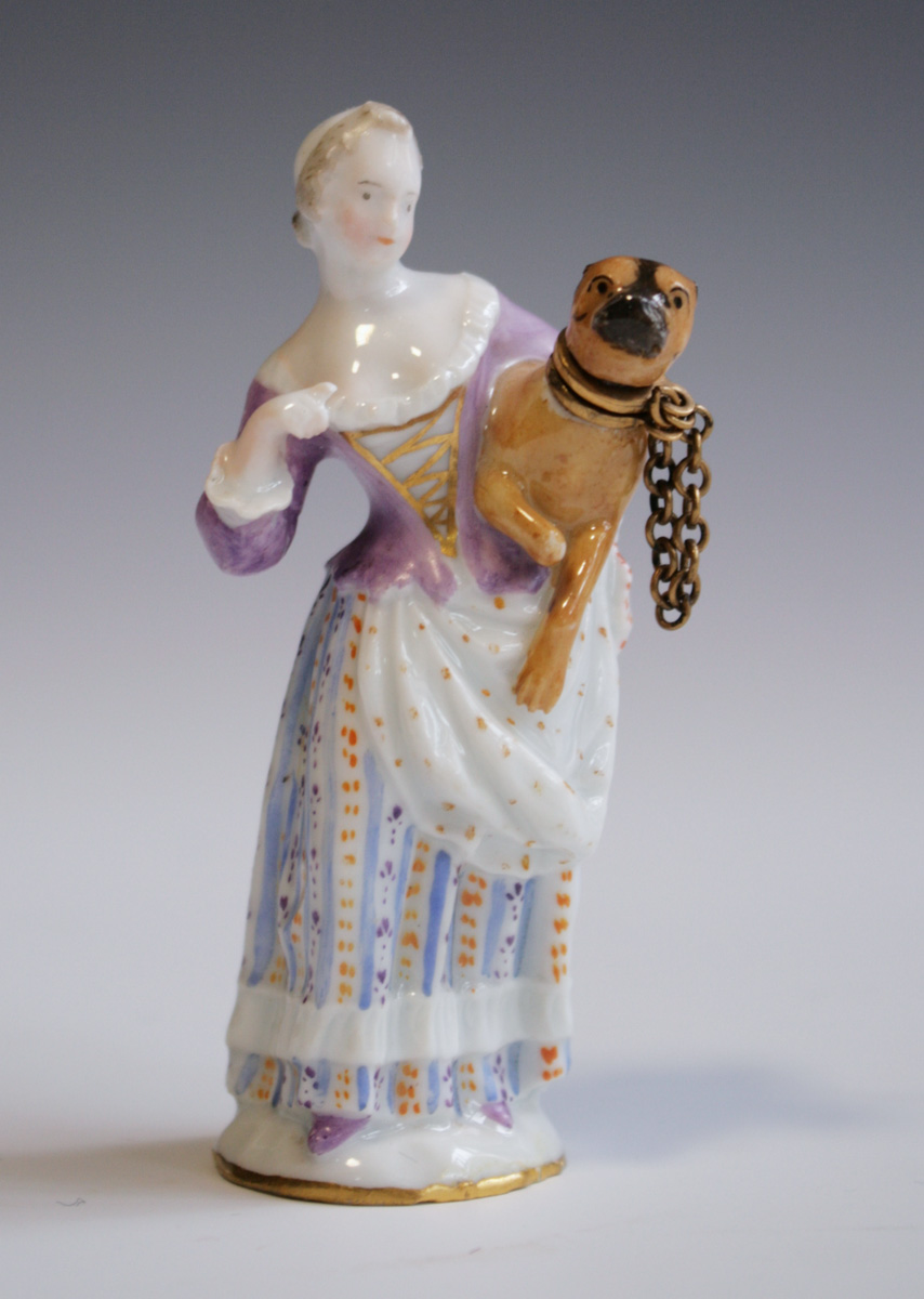 Porzellanfigur Meissen, Dame mit Mops - Kaendler, Johann Joachim
