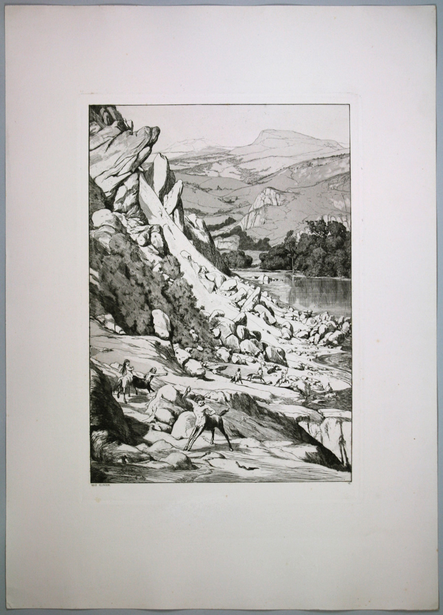 Radierung/Aquatinta auf franz. China, auf Kupferdruckkarton. 42,4 x 29,9 cm (Platte). Ca. 63 x 45 (Blatt). Unter der Einfassungslinie links signiert: MAX KLINGER,