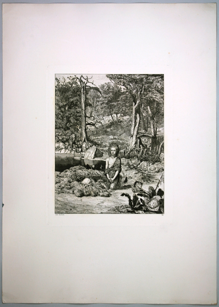 Radierung auf franz. China, auf Kupferdruckkarton. 33,3 x 27 cm (Platte). Ca. 63 x 45 (Blatt). Unter der Einfassungslinie links signiert: MAX KLINGER, rechts röm.