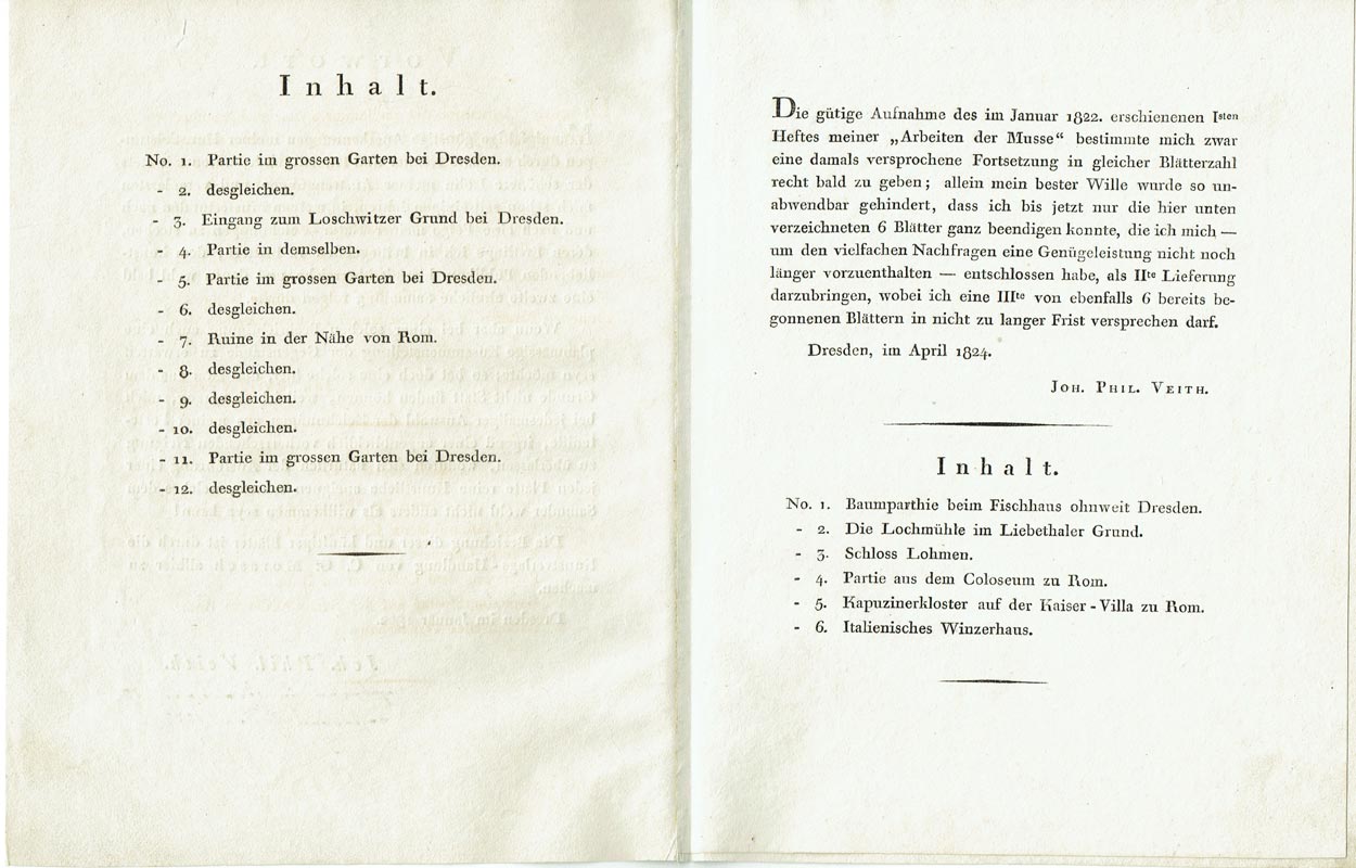 "Arbeiten der Musse" - Sächsische und italienische Landschaftsansichten nach der Natur, aus der Umgegend von Dresden und Rom, 1822 und 1824