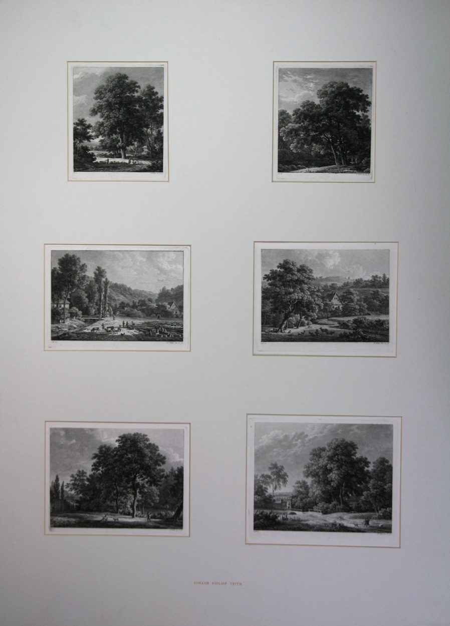 1. und 2. Lieferung. Dresden, C. G. Morasch. 18 Radierungen (12 Blätter der 1. Lieferung, 6 Blätter der 2. Lieferung). Unterschiedliche Plattengrößen: 6,5 - 17,5 x 9 - 21 cm. Im Plattenrand unter der Darstellung nummeriert, signiert: P. Veith del et sc., mit Blindstempel des Verlages versehen. - In fünf große Ausstellungs-Passpartouts montiert.