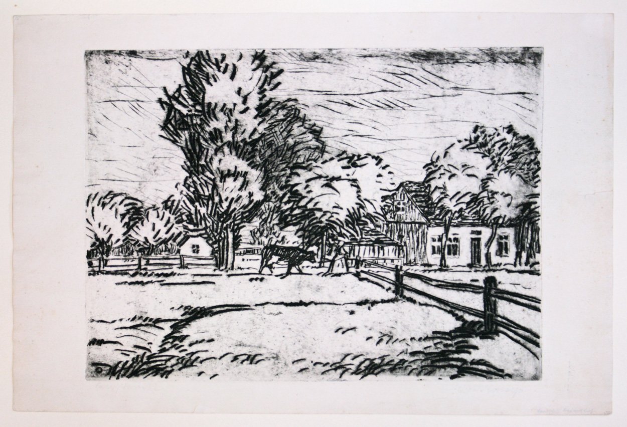 Radierung. 33,2 x 45,7 cm (Platte). 39,8 x 59,8 (Blatt). Unten im linken Rand mit Bleistift bezeichnet: Selbstdruck, rechts signiert und betitelt: