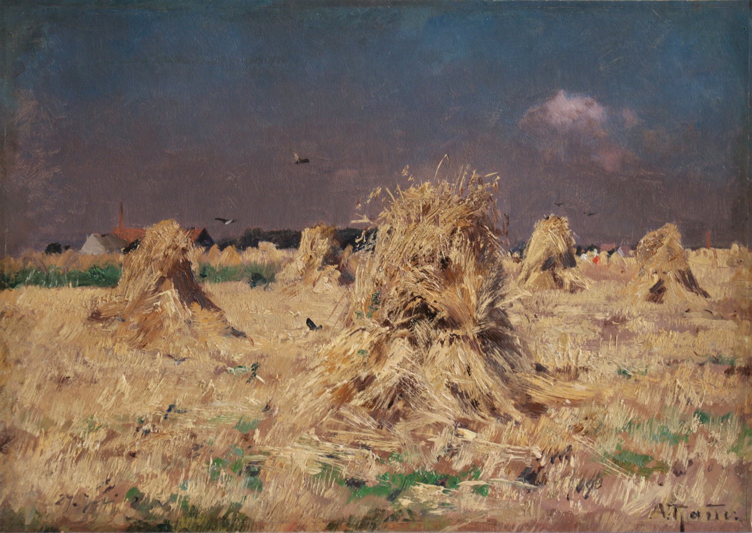 Sommerlandschaft mit Kornpuppen, aufziehendes Gewitter, 1888