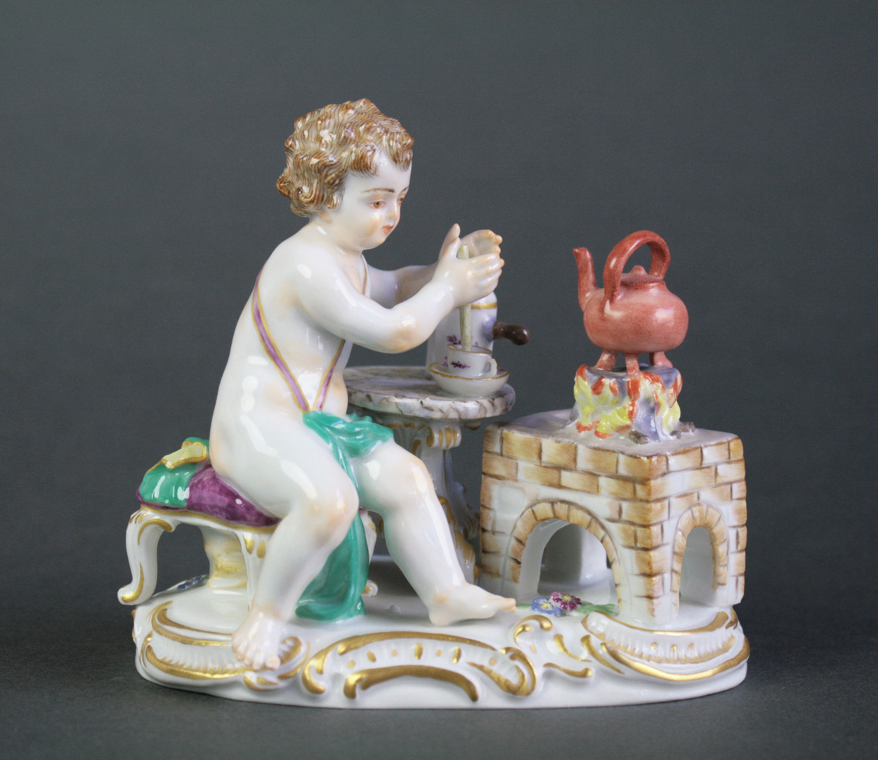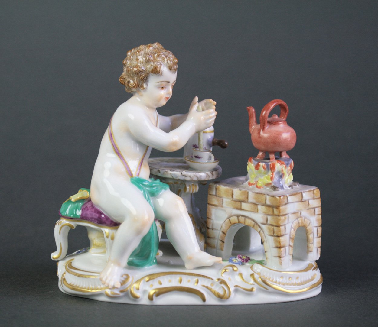 Porzellanmanufaktur Meissen, 1973. Modell von Johann Joachim Kaendler (1706-1775), 1770. Porzellan, farbige Aufglasurbemalung, Goldstaffage. H. 12 cm. Schwertermarke in Unterglasurblau,