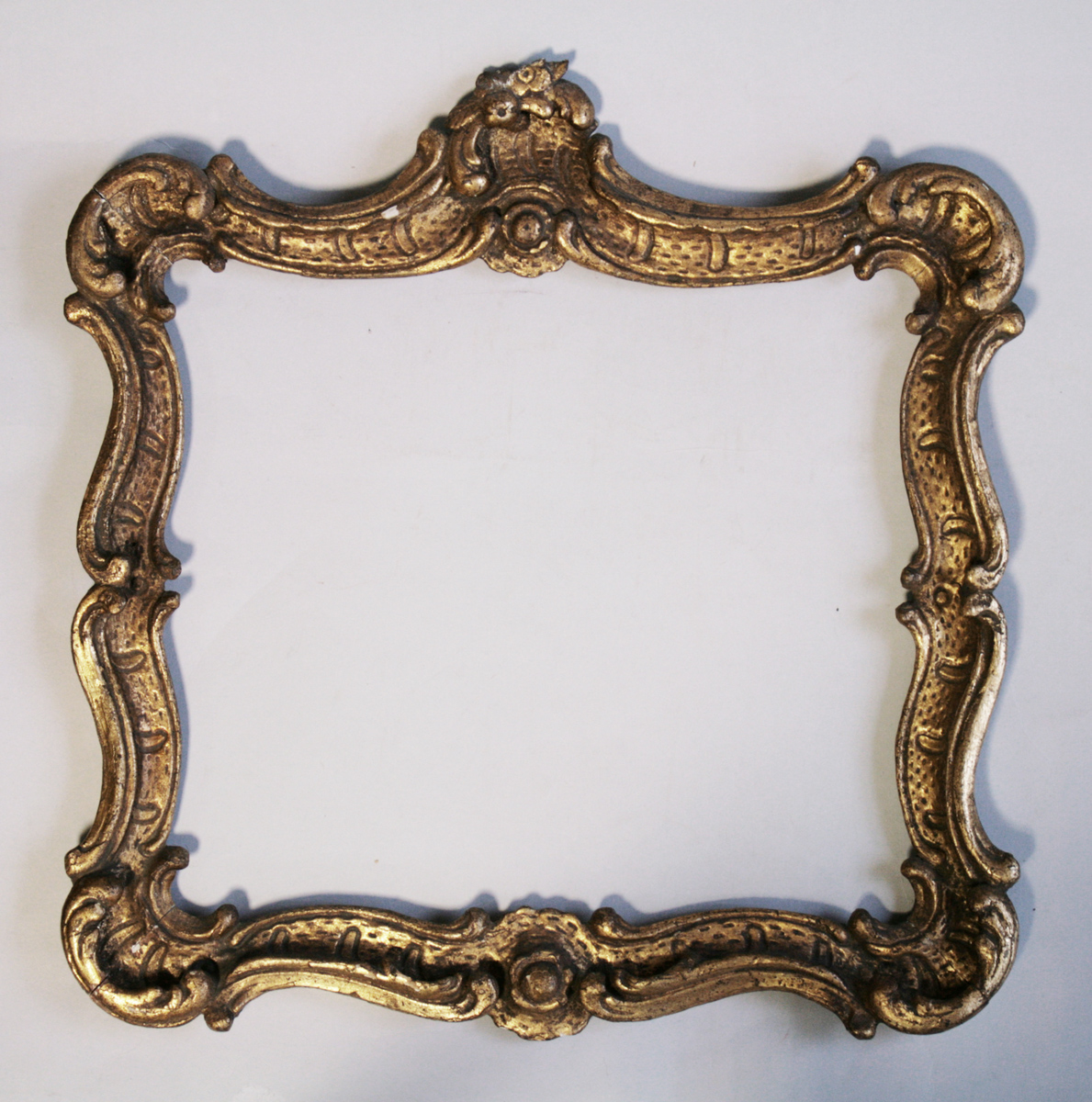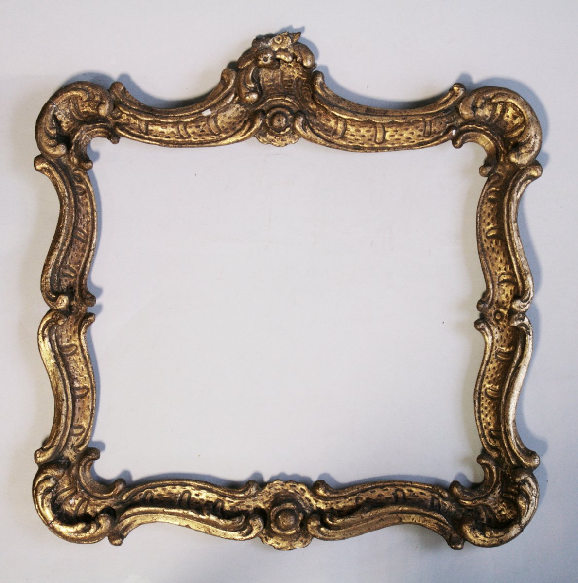 Holz geschnitzt, vergoldet. Ca. 46 x 44 cm (Außenmaß), 31,5 x 36 cm (Falzmaß).