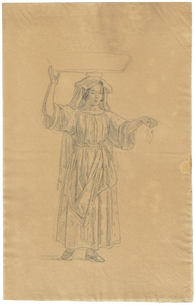 Bei der Weinernte (Italienerin eine große Schale mit Wein tragend)