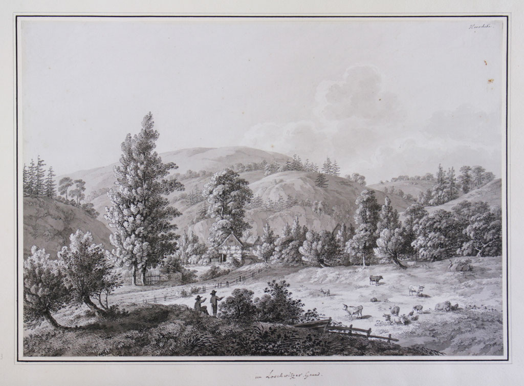Feder in Schwarz, grau laviert auf Bütten. 32,6 x 48,5 cm. Oben rechts signiert "Henschke". (K19)